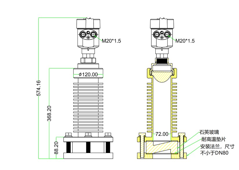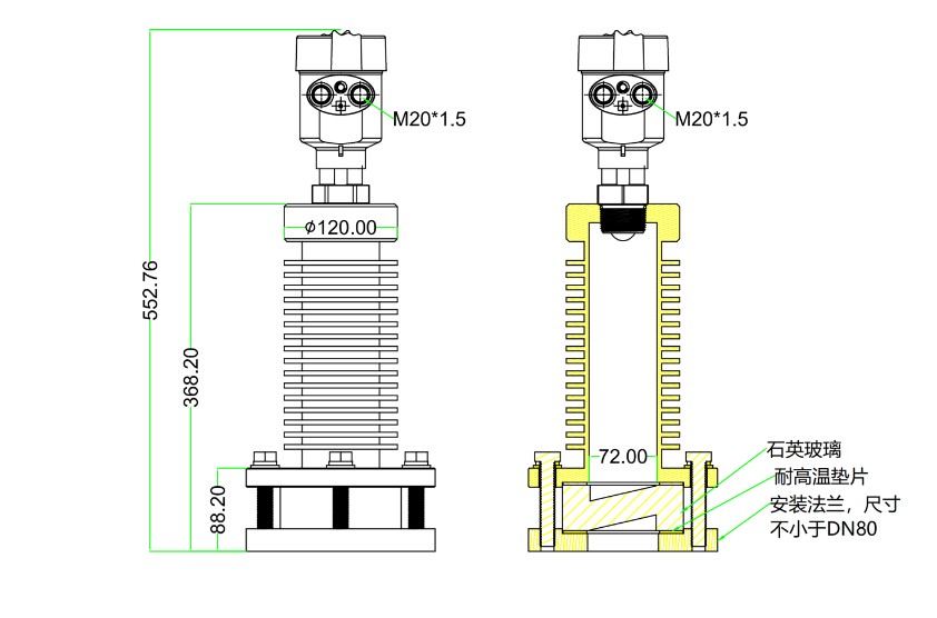 -波束角小(最小5度),能量集中,具有更強抗干擾能力,大大提高了測量精度和可靠性;