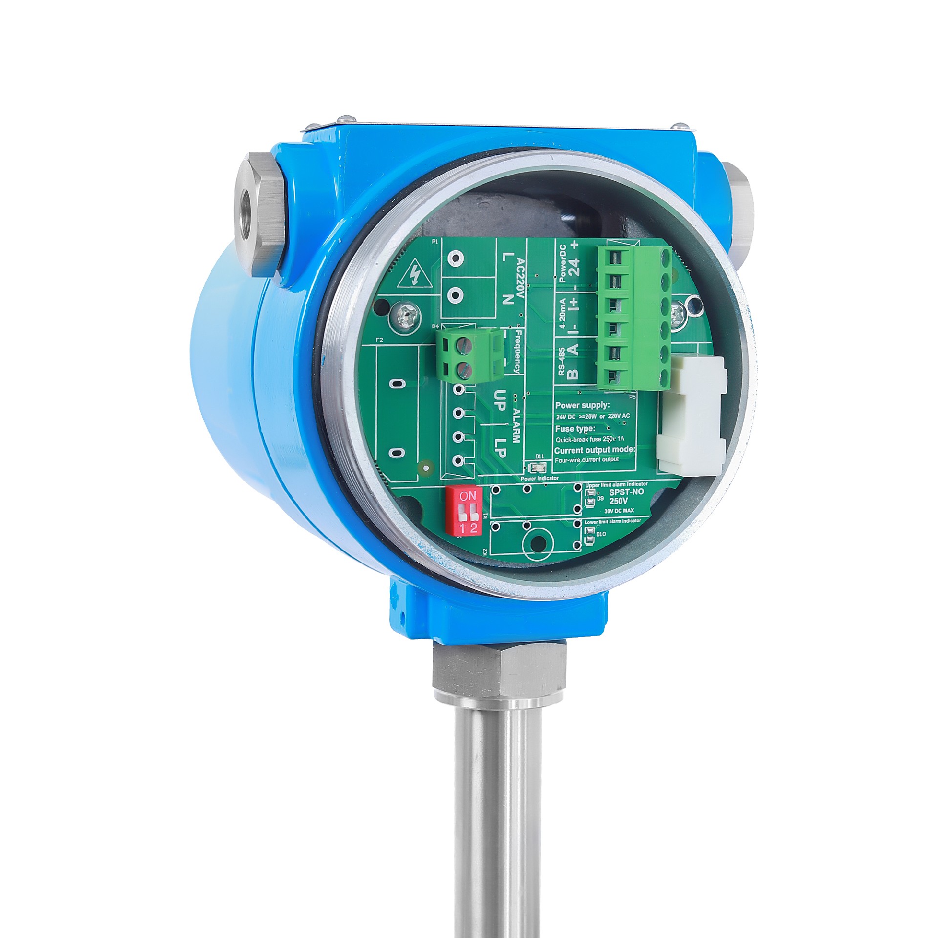 A) 一體型插入式應插入至被測管路軸心,所以測量桿長度視測管徑大小而定。訂貨時應說明。若不能插入至管道軸心,將有廠方提供標定系數, 以完成準確測量。